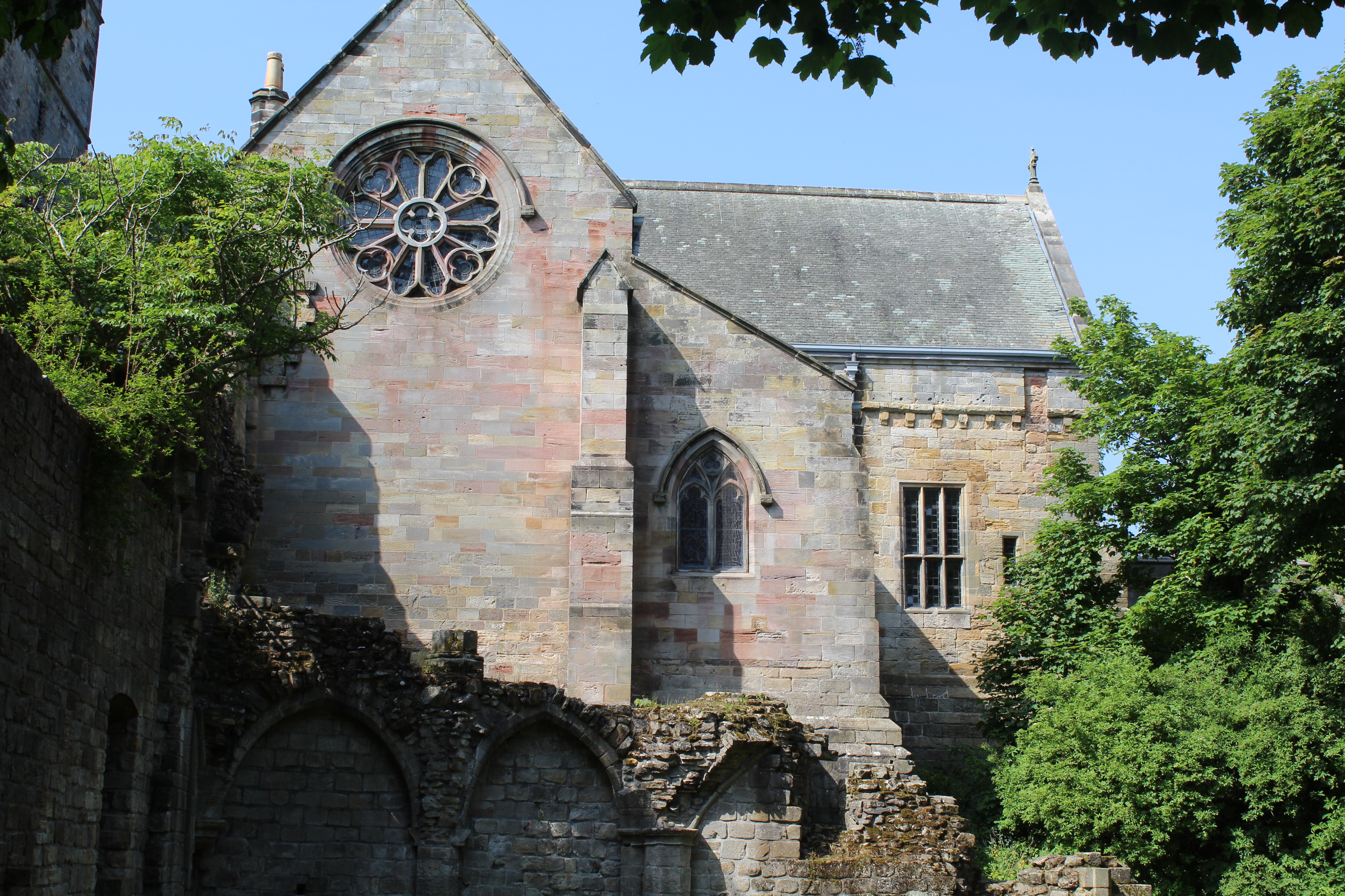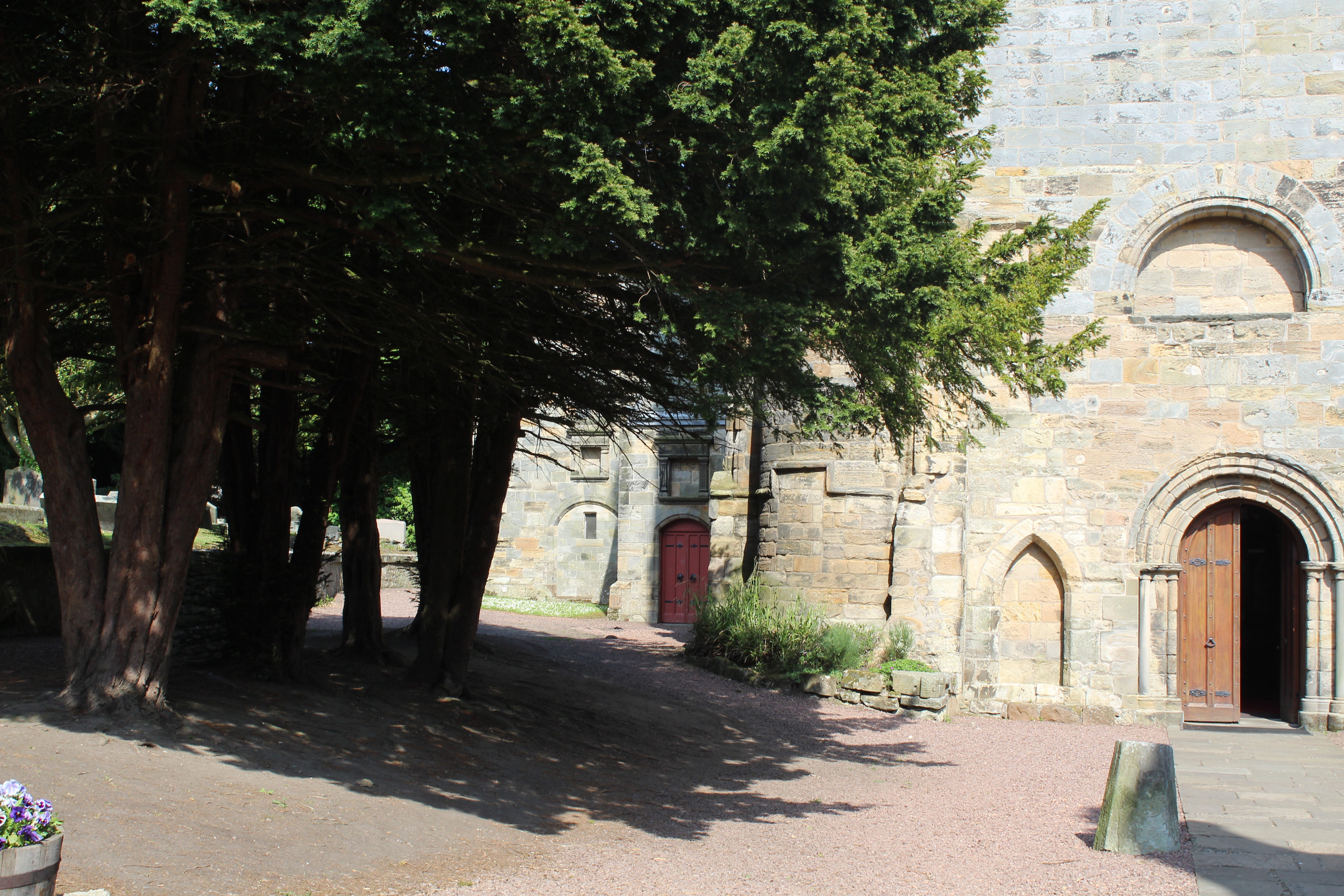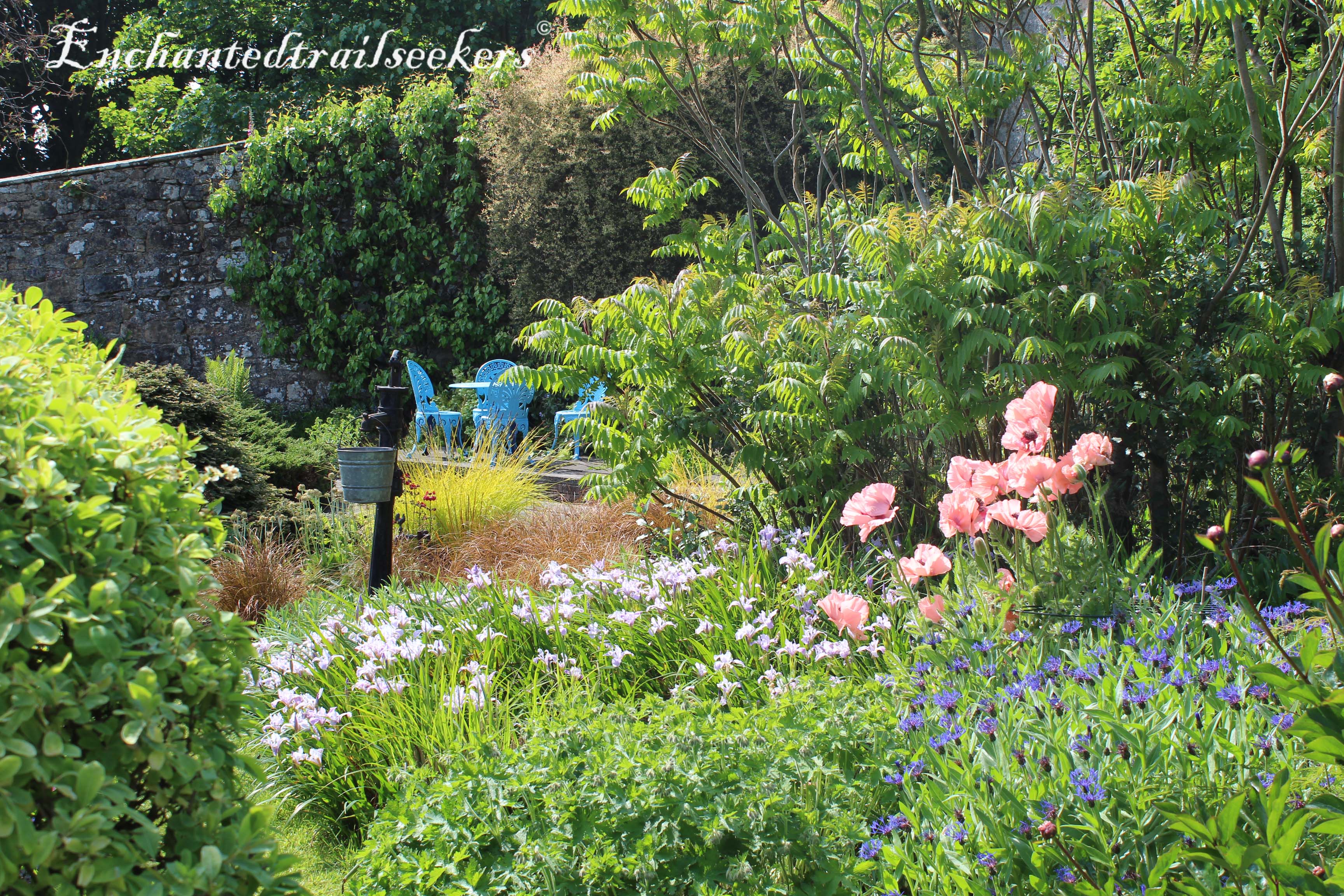 So the visit to Culross was as a result of a request from a friend that said they had found this Abbey at top of hill which was very creepy but doubted that myself and Daisy would even be able to walk up the steep hill to it. A challenge me thinks, half way up this hill I was ok, it was pretty steep but determined not to give up I pushed on after all my two knee replacements had given me the opportunity to walk again. Near to the top we happened upon a beautiful well maintained garden, that was open to the public. It was a warm sunny day and we took the opportunity to drink in the array of colourful flowers. I chose to sit on a bench and meditate, aware of the slight warm breeze that rustled the leaves of the trees which were all shades of greens, yellows and reds. The waft of the perfume from the nearby lilac, blue and white flowers left me totally relaxed as I watched butterflies, and the odd bee, harvest the pollen with chorus of bird song in the background. Nature the breath of life. Daisy had been wandering around taking photographs as usual and after she had finished we then ambled up towards the grounds around the Abbey ruins.