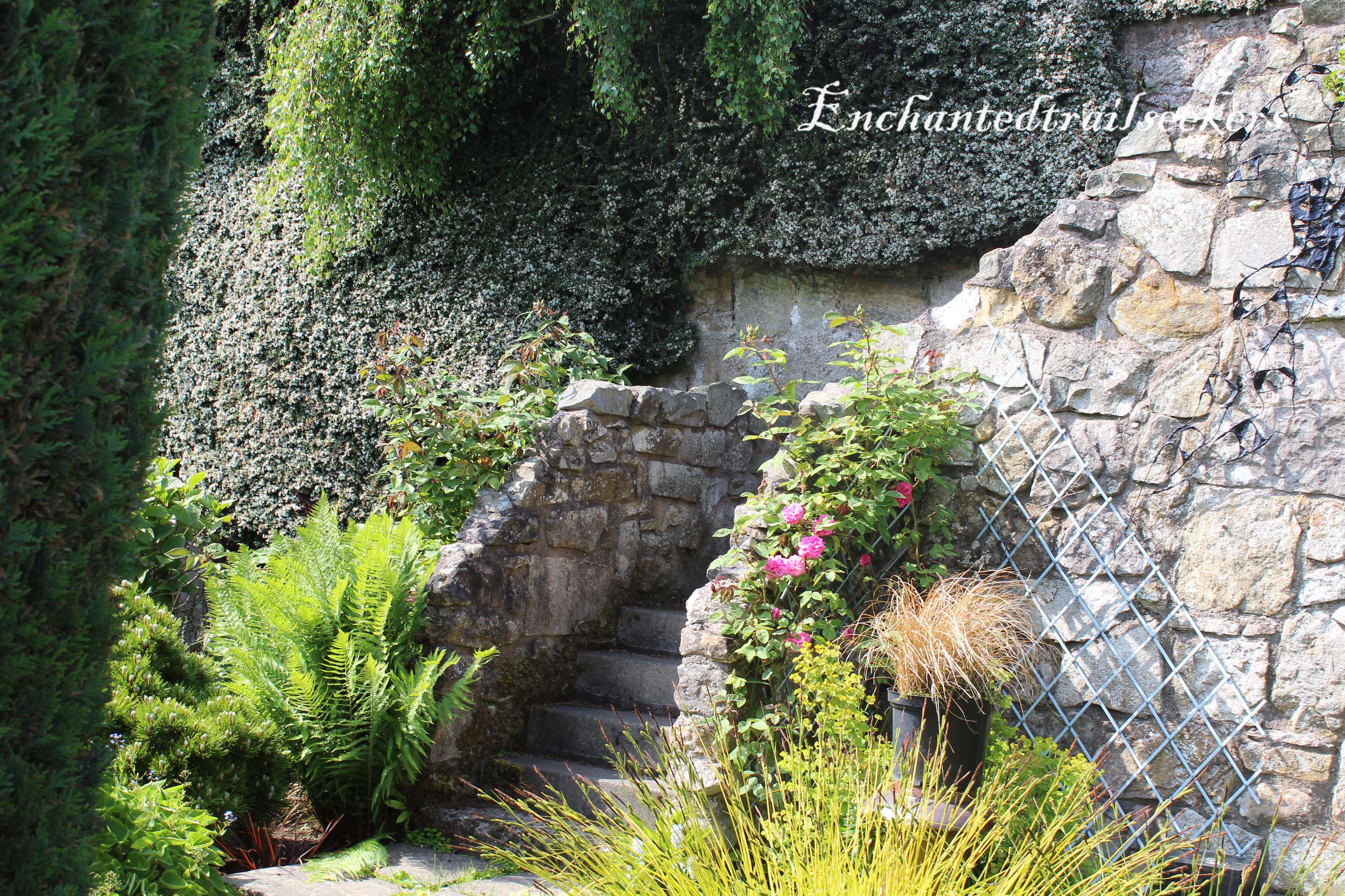 After an exhausting climb up very steep cobbled street in warmth of the sunshine we reached a large wooden door which stood ajar inviting us in to what I only felt could be described as a secret garden. One which was full of colour peace and serenity. Rose sat down with her notebook chilling and drank in the atmosphere in the warm sun as I tried to capture the beauty of this natural almost wild but very carefully tended garden . I could have stayed seated on the little wooded bench in the quite of these beautiful surroundings gathering my thoughts for a long while had we not yet accomplish our challenge of reaching the top of this very steep hill and the Abbey.